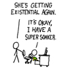 Description: XKCD comic: existentialism vs. super soaker. Super soaker wins.